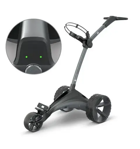Delivering trusted Motocaddy design, performance, and reliability with outstanding value, the SE features sleek automotive-inspired styling and is powered by a new lightweight yet powerful CLICK ‘N’ CONNECT® cable-free lithium battery. This innovative battery system includes patented auto-disconnect technology that automatically switches the trolley off when folded, along with a convenient pop-up charging port for simple on-board charging.